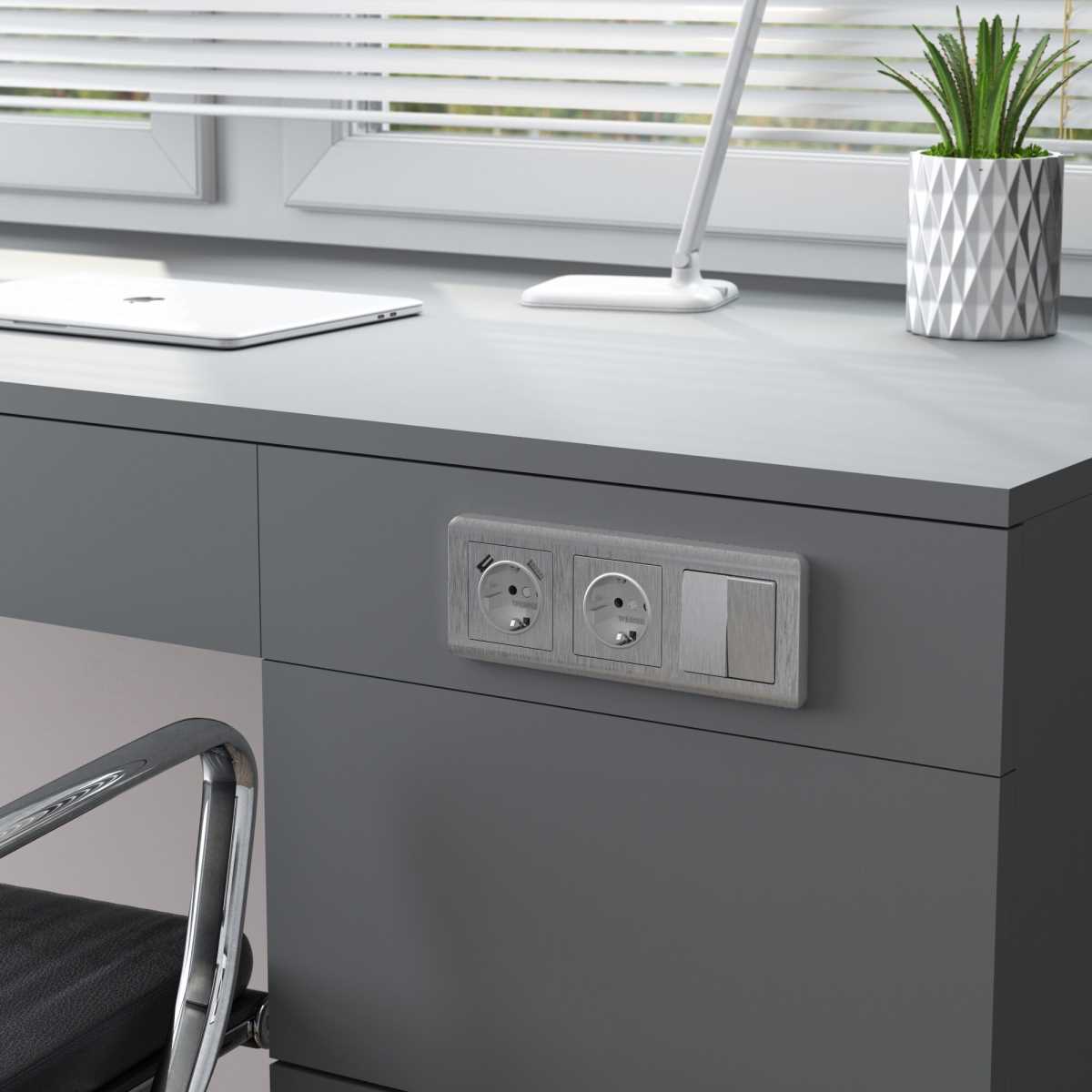 Выключатель двухклавишный Werkel (cеребряный рифленый) W1122009 4690389159626