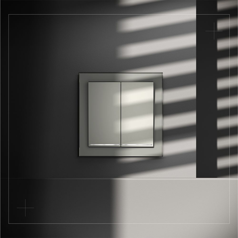 Выключатель встраиваемый Voltum S70 двухклавишный с подсветкой 10А, (сталь) VLS020205 купить в интернет-магазине светильников Mitris.kz!