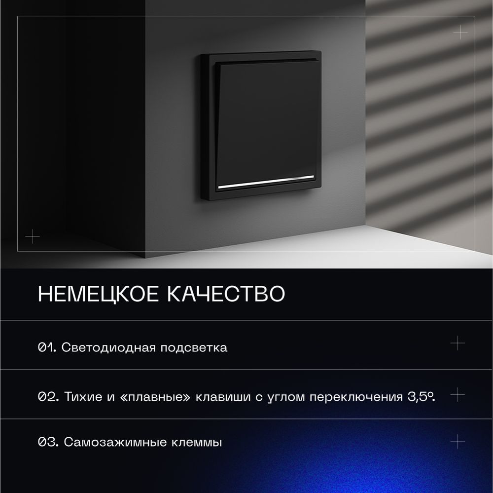 Выключатель встраиваемый Voltum S70 одноклавишный с подсветкой 10А, (черный матовый) VLS010208 купить в интернет-магазине светильников Mitris.kz!