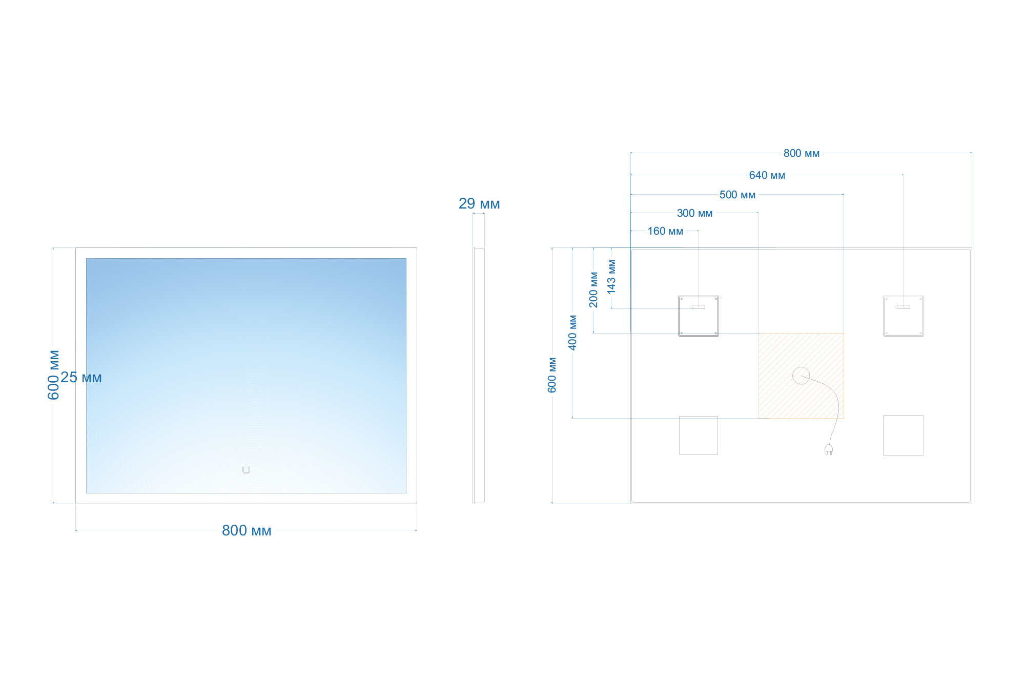 Зеркало ABBER See AG6107S-0.8 с подсветкой, сенсорный выключатель, диммер