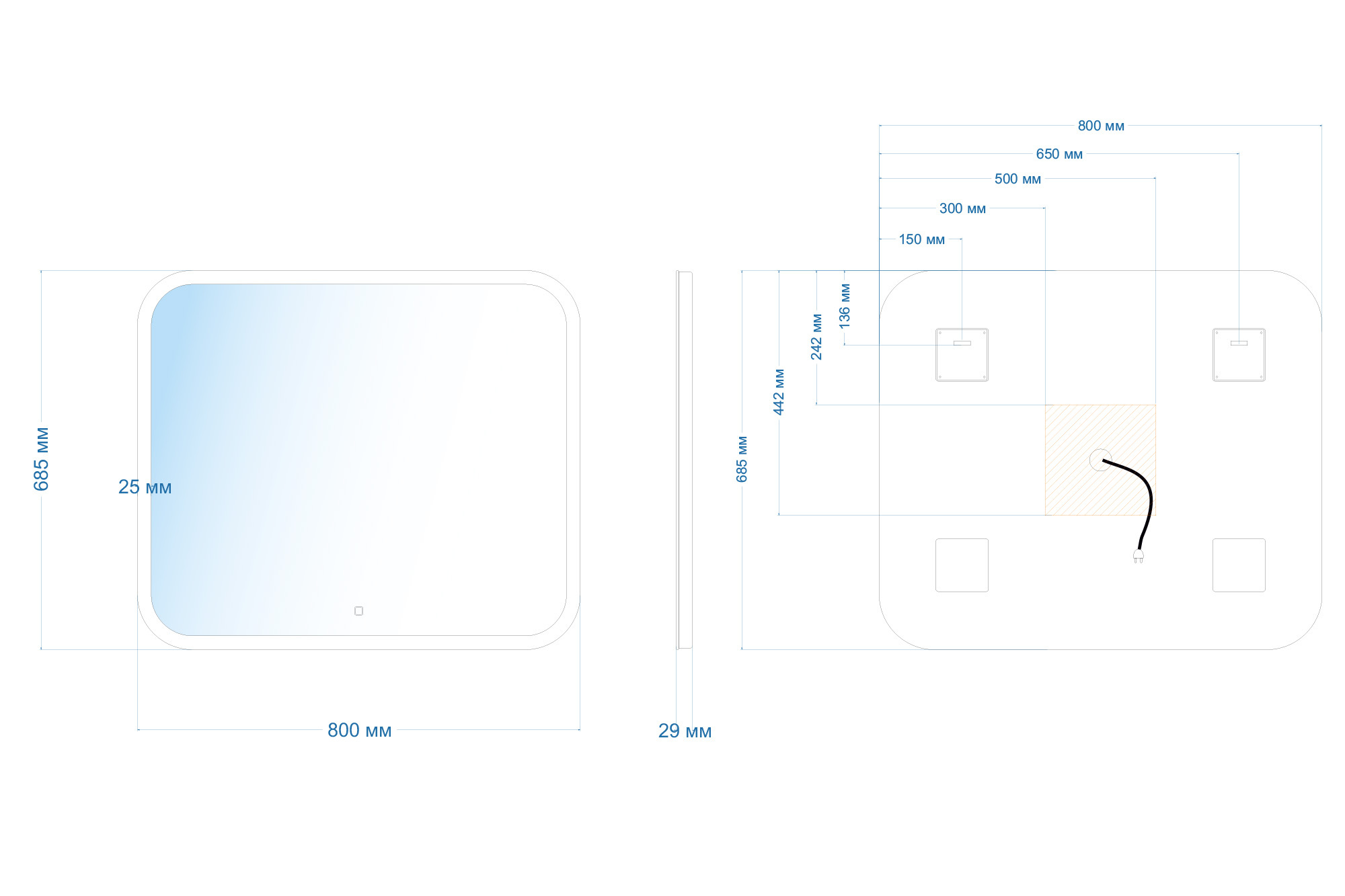 Зеркало ABBER See AG6109S-0.8 с подсветкой, сенсорный выключатель, диммер