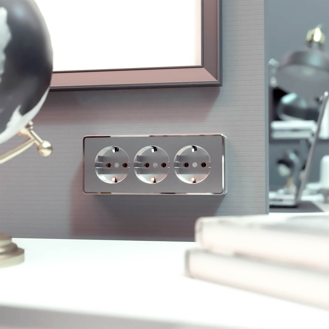 Розетка тройная с заземлением и шторками Werkel Gallant серебряный W5073106 4690389167195 купить в интернет-магазине светильников Mitris.kz!