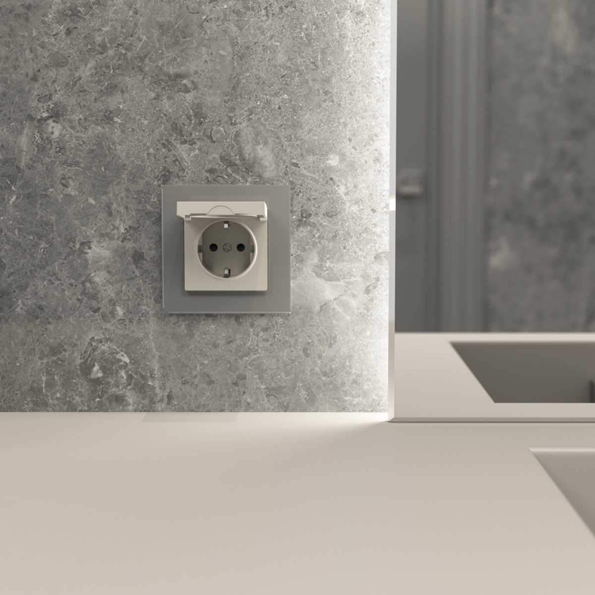 Розетка влагозащ. с зазем. с защит. крышкой и шторками (дымчатый) W1271204/ a069464 купить в интернет-магазине светильников Mitris.kz!