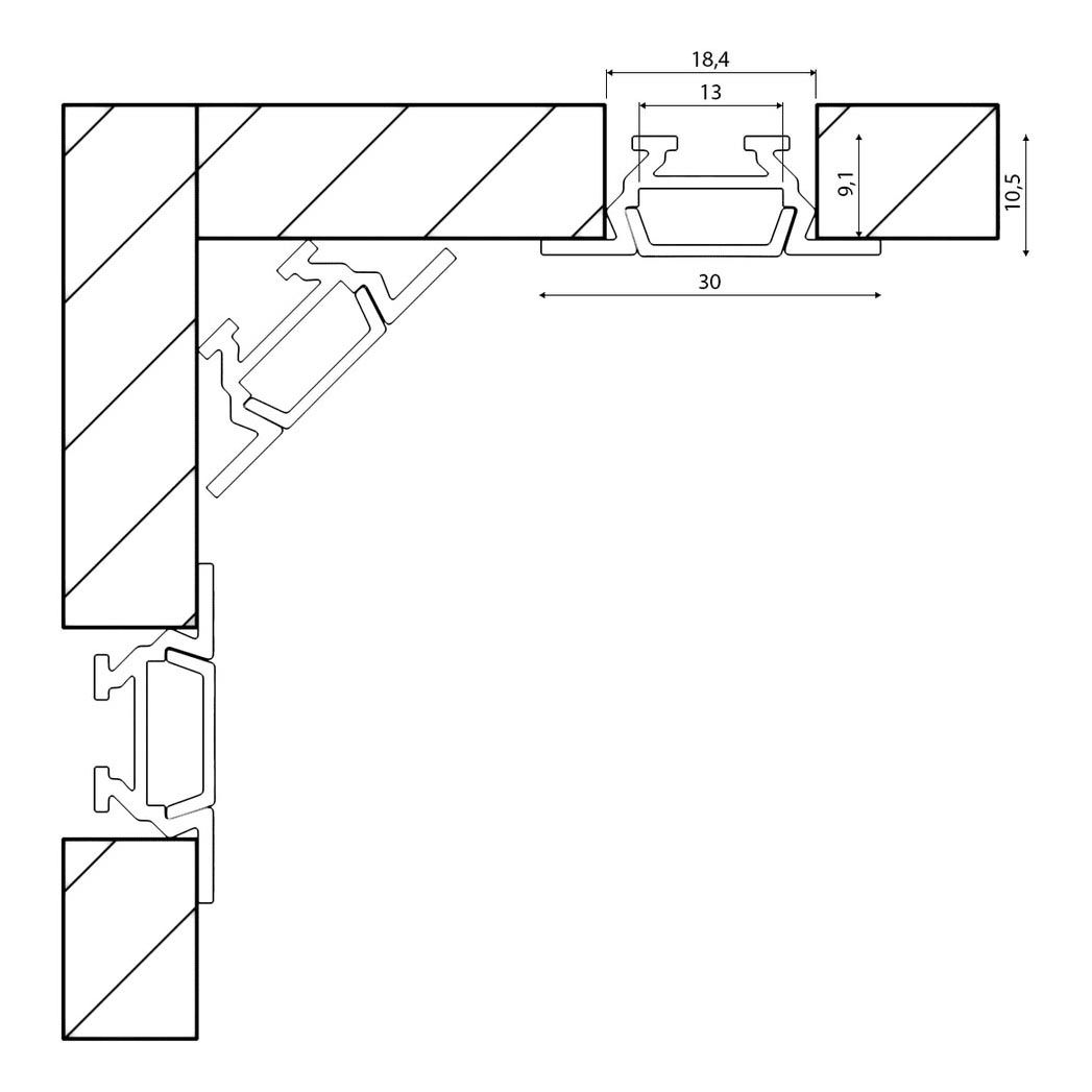 Встраиваемый профиль с рассеивателем SWG RC-1030 000084